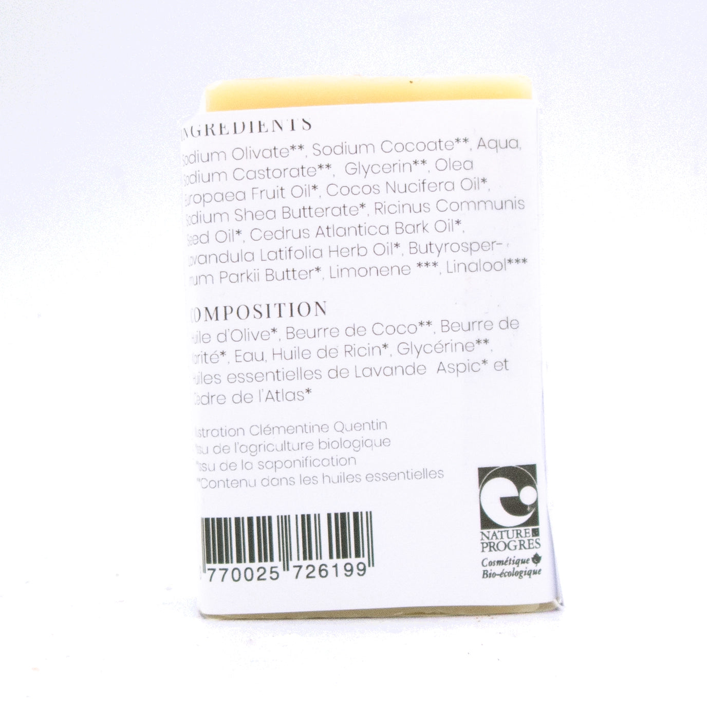 Le savon à Barbe biologique - Tous type de peau - Aux huiles essentielles de Lavande Aspic du Gard et Cèdre de l'Atlas. Le savon à barbe biologique à l’huile de ricin J’ai conçu ce savon pour rasage et le lavage de la barbe. Avec son surgras de 11 %, il va nourrir en profondeur votre peau. Son fort taux de glycérine naturelle, grâce aux beurres de karité et coco biologique, dépose un film protecteur afin d’éviter toutes les rougeurs induites par le passage du rasoir. L’huile de ricin biologique possède une action cicatrisante. Elle renforce et fortifie les cheveux et les poils de barbe ! Elle est aussi bénéfique pour la peau notamment pour les problèmes de sècheresse et de crevasses. Puis, il faut l’avouer, cette odeur de lavande et de cèdre est dingue ! Ce savon mousse fortement. Il est parfait pour le rasage. Il est aussi utilisable sur les poils des jambes,